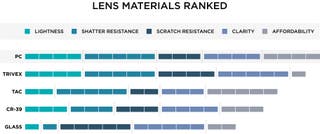 Polycarbonate lenses are lightweight, impact-resistant, and offer excellent UV protection. They’re a top choice for sports sunglasses, children's eyewear, and safety glasses. PC lenses are also up to 10 times more impact-resistant than plastic or glass lenses, making them virtually shatterproof. But they’re more prone to scratching, so we recommend scratch-resistant coating options if you intend to be rough with them.