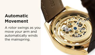 Automatic watches, also known as self-winding watches, feature a mechanical movement that winds itself as you move your wrist.