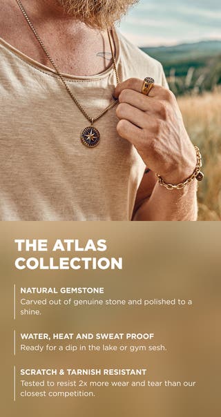 Atlas | Gold-tone Stainless Steel Rotating Azurmalachite World Pendant Necklace