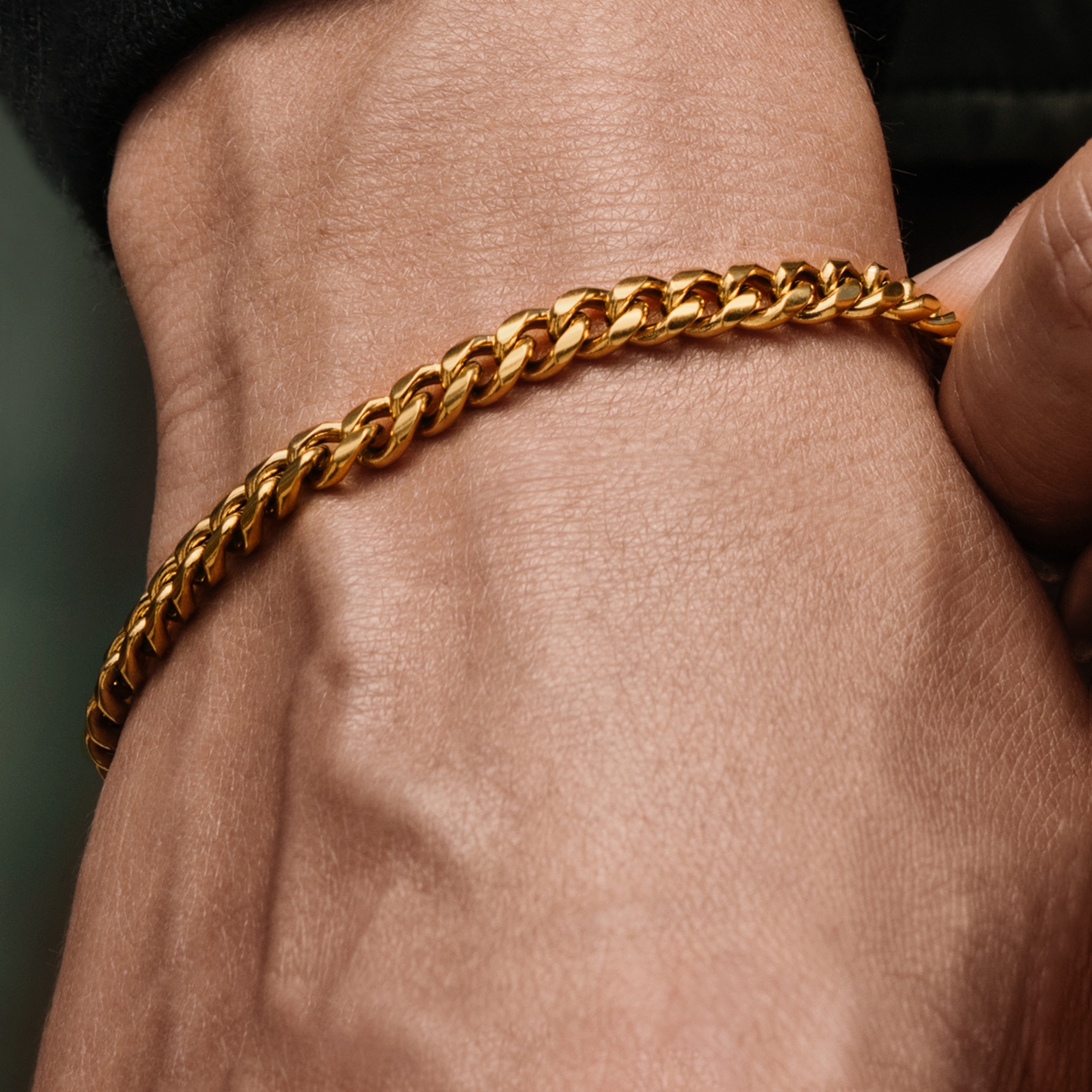 Men’s gold bracelets offer timeless elegance and sophistication. Whether you choose a classic chain or a modern cuff, gold is a statement of luxury and power. Ideal for both formal and casual occasions, gold bracelets can elevate any outfit, from suits to everyday wear.