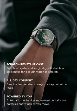 I was looking for a skeleton watch that still lets me read the time without any problems and found the Cor Kylo. It's the perfect mixture of classic elegance and a little something extra. The design is gorgeous! It just arrived a couple of days ago and it's already a huge talking point in conversations. This is a fantastic mechanical watch for this price range. The automatic mechanism works (and looks) great. It uses a rather simple movement (Seagull 1646), but it has a reputation for being very solid and, again, a good choice for an appropriate price. This is the first mechanical watch I've ever bought and I can highly recommend it!