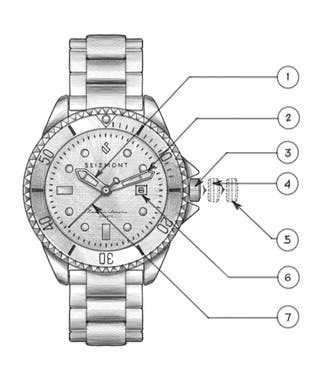 • Do not move the crown or push any buttons when your watch is in contact with water, as this may let water enter the case.